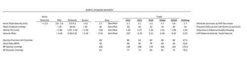Hi! I'm seeking advice on a safe/ reasonable timeframe for my dad to have TAVR/ SAVR because the hospital he is being seen at has longer wait times than others, but is where he would prefer to have care. I am going to share some of his specific #s below but most notably also he has had a sharp increase in symptoms associated with his aortic stenosis. He went from riding 80 miles at a time on his bike, weight lifting, and doing heavy work around the house all day long to being out of breath just walking around the house and falling asleep 3 times a day because he is constantly tired within the last few months! The progression of his symptoms is what is most concerning to me related to waiting. Thank you all so much for this community and any feedback that you can provide! An image with his current test results and historical data is attached here. Thank you!!